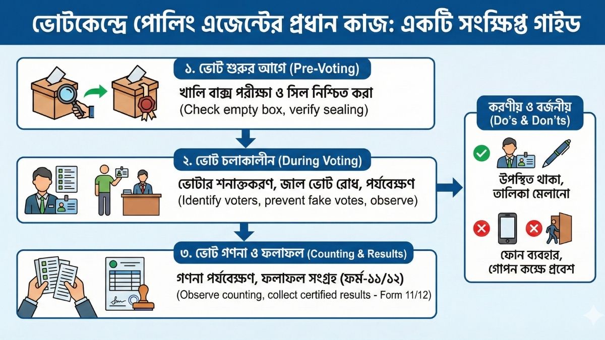 ভোটকেন্দ্রে পোলিং এজেন্টের দায়িত্ব ও কাজের ধাপসমূহ
